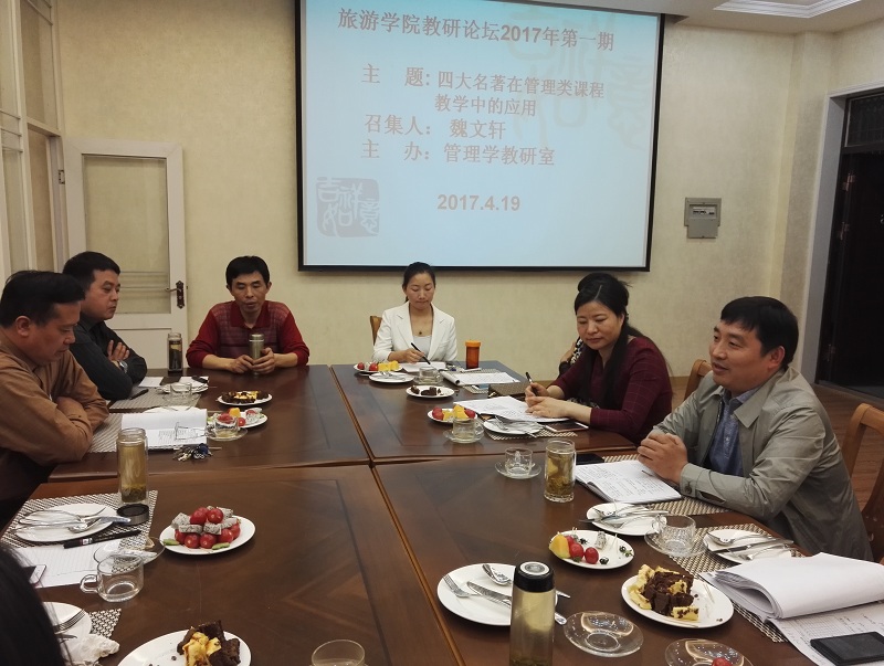 4月19日上午10点,William威廉英国管理学教研室主办的William威廉英国2017年第一期教学沙龙在经管楼302(西餐模拟室)成功举办。管理学教研室主任魏文轩教授做了题为“经典名著在管理类课程教学中的应用”的教学分享。