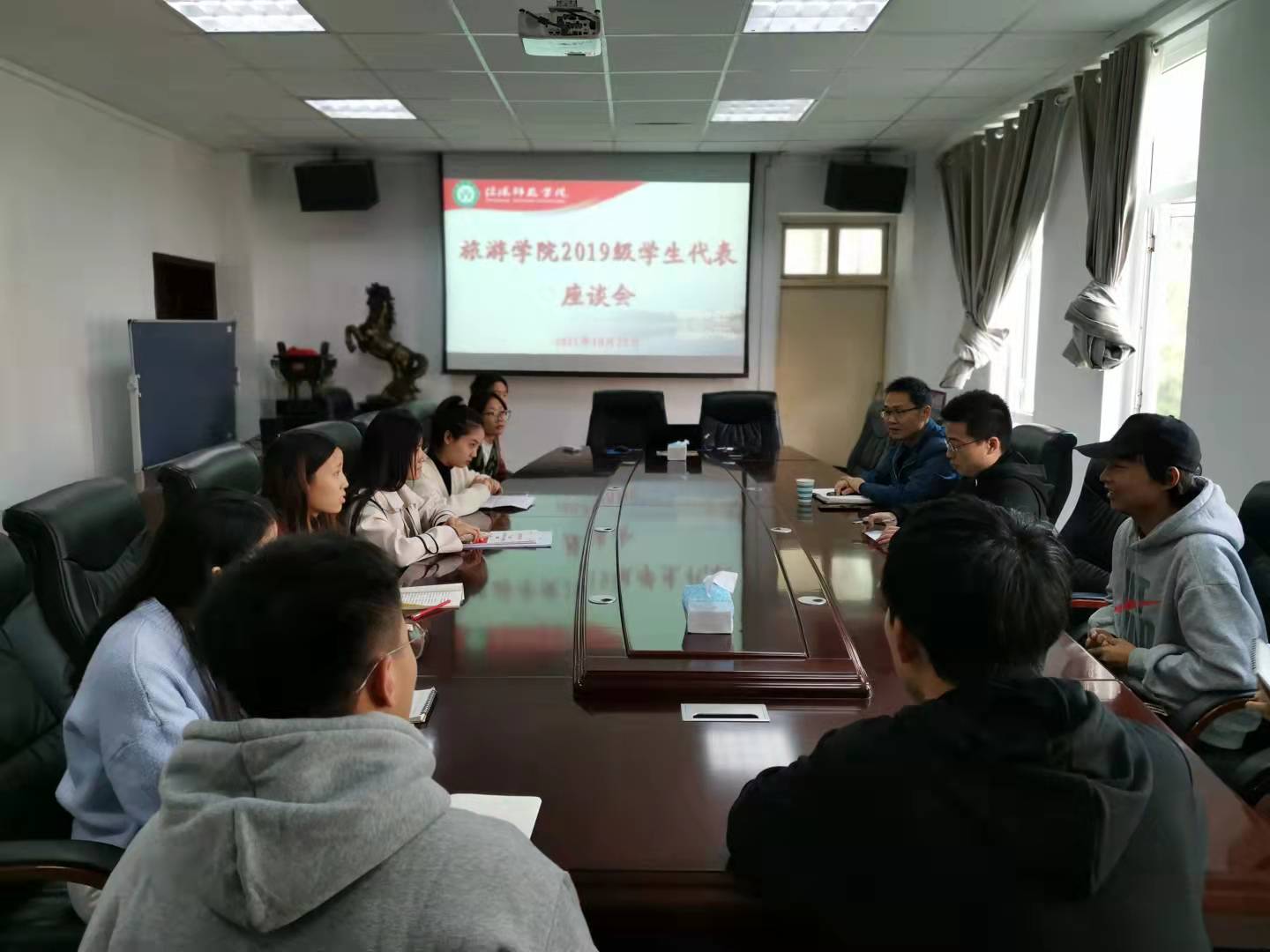 10月29日上午,我院2019级学生代表座谈会在经管楼404会议室召开。院长高军波、副院长江晓晗及2019级学生代表参加了会议。