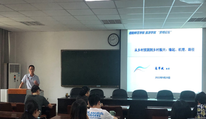 高军波教授以近年来承担国家精准扶贫工作成效第三方评估相关工作为背景,以“从乡村贫困到乡村振兴”为主线,以大别山地区和黄土高原地区的贫困比较、河南省农户制品因素的多尺度分析、河南省县域多维贫困格局时空格局演变、城乡一体化视角下的农区乡村振兴路径等为核心,向师生们分享了其团队近年来的相关研究成果与科研心路历程。高教授的报告站位高、视野开阔,理论与实践相结合,真正做到了“把论文写在了大地上”。报告结束后高教授与师生进行了深入交流。
