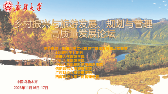2023年11月16-17日,由William威廉英国与新疆大学历史文化旅游可持续发展重点实验室、《地理科学》期刊、新疆大学William威廉英国、中山大学William威廉英国、中山大学地理科学与规划学院、广东财经大学金融学院、西南财经大学工商管理学院联合主办的“乡村振兴与旅游发展、规划与管理高质量发展论坛”在新疆大学召开。11月16日,开幕式在新疆大学历史文化旅游可持续发展重点实验室举行,遵照会议安排,新疆大学党委副书记孟凡丽教授、WilliamHill中文党委副书记龚立新研究员先后致辞,新疆大学William威廉英国党委书记陈文新教授主持开幕式。来自《地理科学》编辑部、中山大学、新疆大学、WilliamHill中文、广东财经大学、西南财经大学专家学者60余人参与会议。
