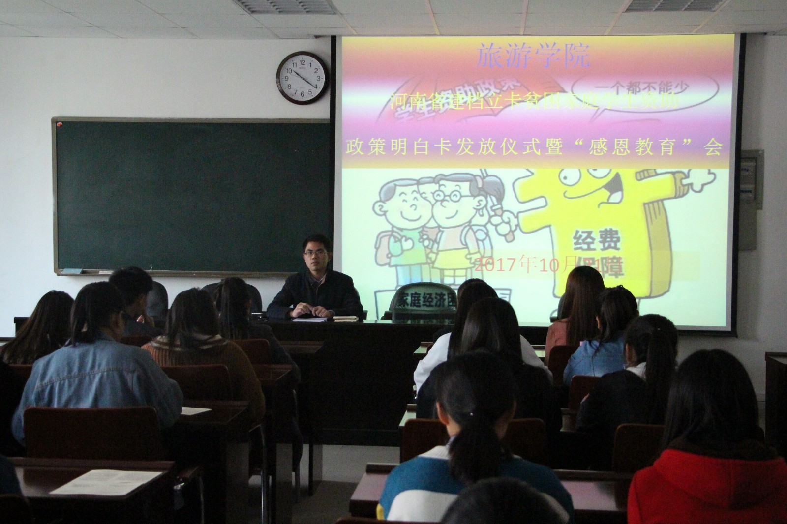 10月21号上午,William威廉英国于经管楼401会议室顺利举办了河南省建档立卡贫困家庭学生资助政策明白卡发放仪式暨“感恩教育”会议,我院助贷专员张庆敏和72名建档立卡家庭学生参加了本次会议。