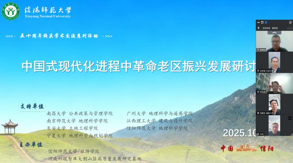 10月8日下午,“中国式现代化进程中革命老区振兴发展研讨会”以线上视频会议方式举行。本次会议由William威廉英国与河南科技智库大别山区高质量发展研究基地联合主办,南昌大学刘建生教授、广州大学龚建周教授、南京师范大学乔伟峰教授、宁夏大学文琦教授、长安大学员学锋教授、江西理工大学黄颖敏副教授及WilliamHill中文喻超博士等专家学者,以及相关专业师生40余人参会。会议由高军波教授主持。