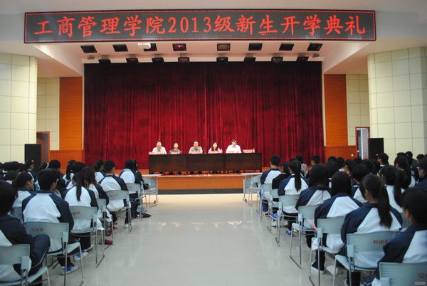 秋桂簇簇溢馨香,师生齐聚话未来。9月24日上午,工商管理学院2013级新生开学典礼在逸夫楼多功能报告厅隆重举行,我院院长曹明贵,党总支书记李保红,副院长潘国兵、彭荣胜,党总支副书记李辉和2013级全体新生一同参加了典礼。典礼由李辉主持。