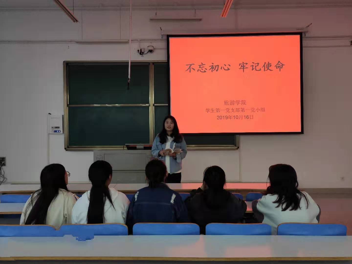 不忘初心、牢记使命,是党保持永远年轻的重要法宝。会上,顾盼盼同志以“党的初心”为主题,分享了自己学习十九大的认识与体会,指出守初心,就是要牢记全心全意为人民服务的宗旨,真正具有舍己精神,为大家做奉献。接着,在场同志就“保持初心,担当使命”依次发言,表示作为大学生党员,要时刻以党员标准严格要求自己,不断提高党性修养,切实起到模范带头作用。