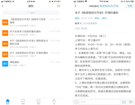 《旅游规划与开发》这门课程是一门新课,在上课之前如何让学生了解这门课程?如何介绍自己,拉近与同学们的距离?关于网络教学一些构想如何让学生及时知晓以便在课程开展过程中形成默契?魏超老师思考再三,决定以通知的方式提前发布,并通知学生及时阅读。要交待的内容比较多,考虑成熟索性分成4个通知,拉响上课铃。