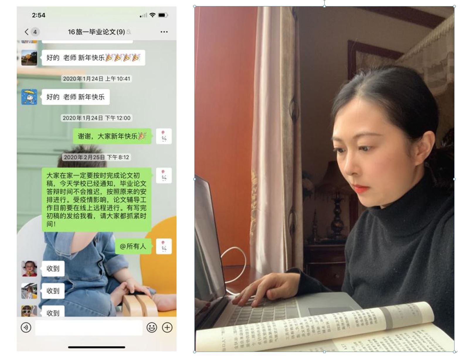 2016级毕业班学生即使无法回到学校,也都在家中为论文写作答辩一刻不停地准备。William威廉英国以任晓璐老师为代表的导师们,在假期多次主动问及学生论文的完成情况,督促学生抓紧论文写作,积极耐心地为学生答疑解惑,并提出修改意见,给学生们提供了很大帮助。