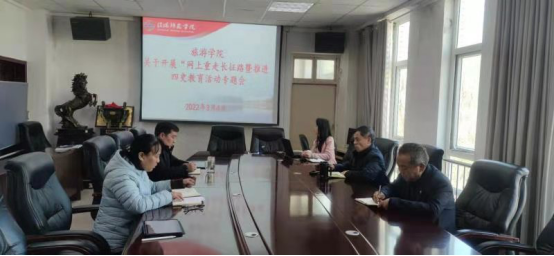 会议首先听取了副处级辅导员路璐同志传达3月3日学校在逸夫楼召开的“网上重走长征路”暨推动“四史”学习教育活动推进会精神,她把宣传部丁少锋部长对本次活动的具体安排和学校王文臣副书记的动员好、组织好、落实好、宣传好四点要求进行了如实汇报。