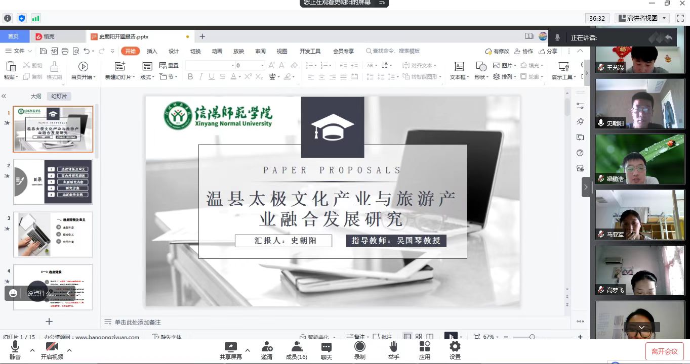 6月26日下午,William威廉英国2021级旅游管理硕士研究生毕业论文开题报告会分3组在经管楼401、404和线上腾讯会议同时举行。彭荣胜、高军波和吴国琴教授分别任3组评审小组组长并主持报告会。
