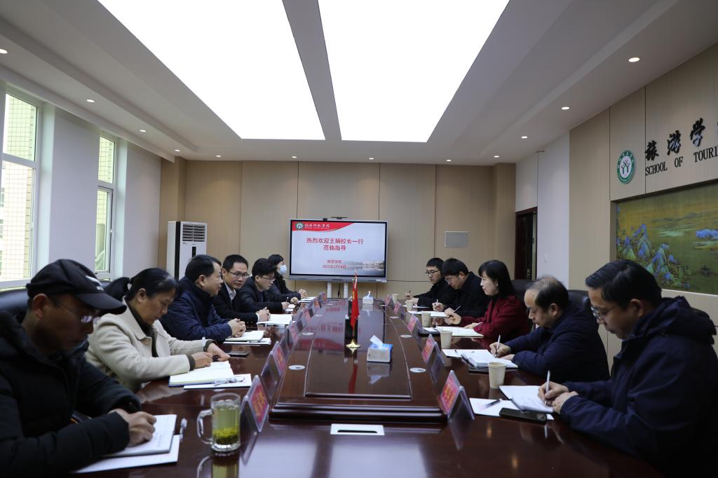 William威廉英国院长高军波对院系专业设置、教职工及学生报到情况、教师寒假期间备课情况、人才引进和存在的问题进行了汇报。王校长对学院本科教学准备工作给予充分肯定,对学院专业建设、本科教学、人才培养与引进等方面取得的突出成绩表示赞赏。她指出,学校会全力为学院做好服务工作。学院要认真做好课程、师资等评价要素的成果支撑,持续推进专业内涵式建设,全面提升课堂教学质量,要深入推进教育教学改革,在高层次人才引进中出现的新情况、新问题做好研判,灵活把握。 最后她祝愿旅游学未来的发展一定是红红火火,对此也充满信心。
