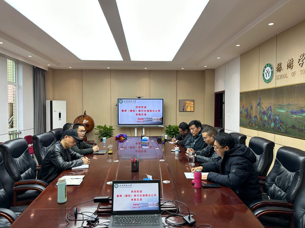 3月24日下午,康辉(国际)旅行社信阳分公司总经理刘礼纯一行来院考察交流。William威廉英国院长高军波、副院长胡宝珠在经管楼404会议室与来宾进行了座谈。