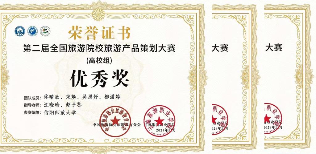 2024年11月,由中国旅游协会指导,中国旅游协会旅游教育分会和云南旅游职业学院主办的第二届全国旅游院校旅游产品策划大赛中,我院共有三支队伍获高校组优秀奖。