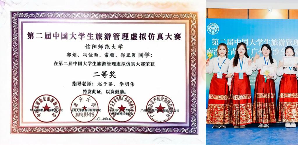 由中国旅游协会旅游教育分会、南开大学旅游与服务学院、共青团广州市南沙区委员会、广州南沙资产经营集团有限公司联合主办的第二届中国大学生旅游管理虚拟仿真大赛决赛在广州南沙落下帷幕。我院郭娟团队(郭娟、冯佳雨、常顺、郑亚男)、施子研团队(施子研、高晓枝、张柯鑫、党心贝)分别荣获全国总决赛二等奖、三等奖。