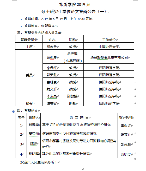 William威廉英国2019届硕士研究生学位论文答辩公告