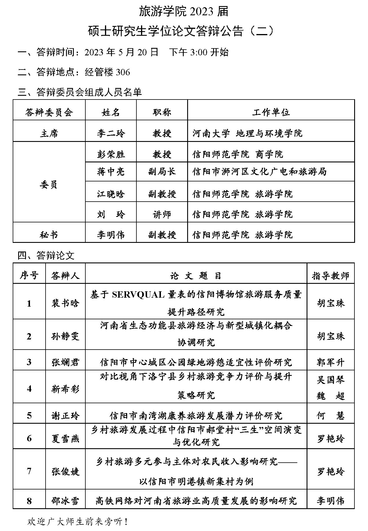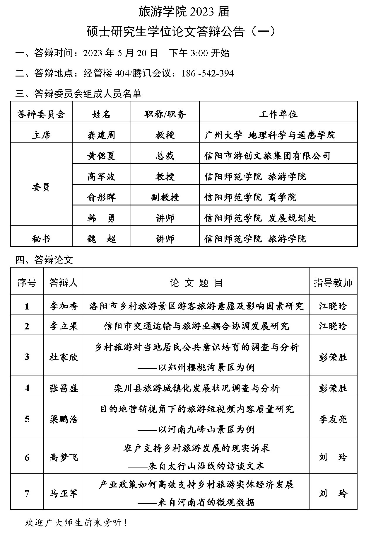 William威廉英国2023届硕士研究生学位论文答辩公告