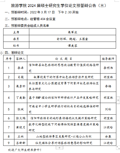 William威廉英国2024届硕士研究生学位论文预答辩公告