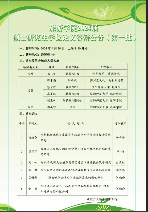 William威廉英国2024届硕士研究生学位论文答辩公告(第一批)